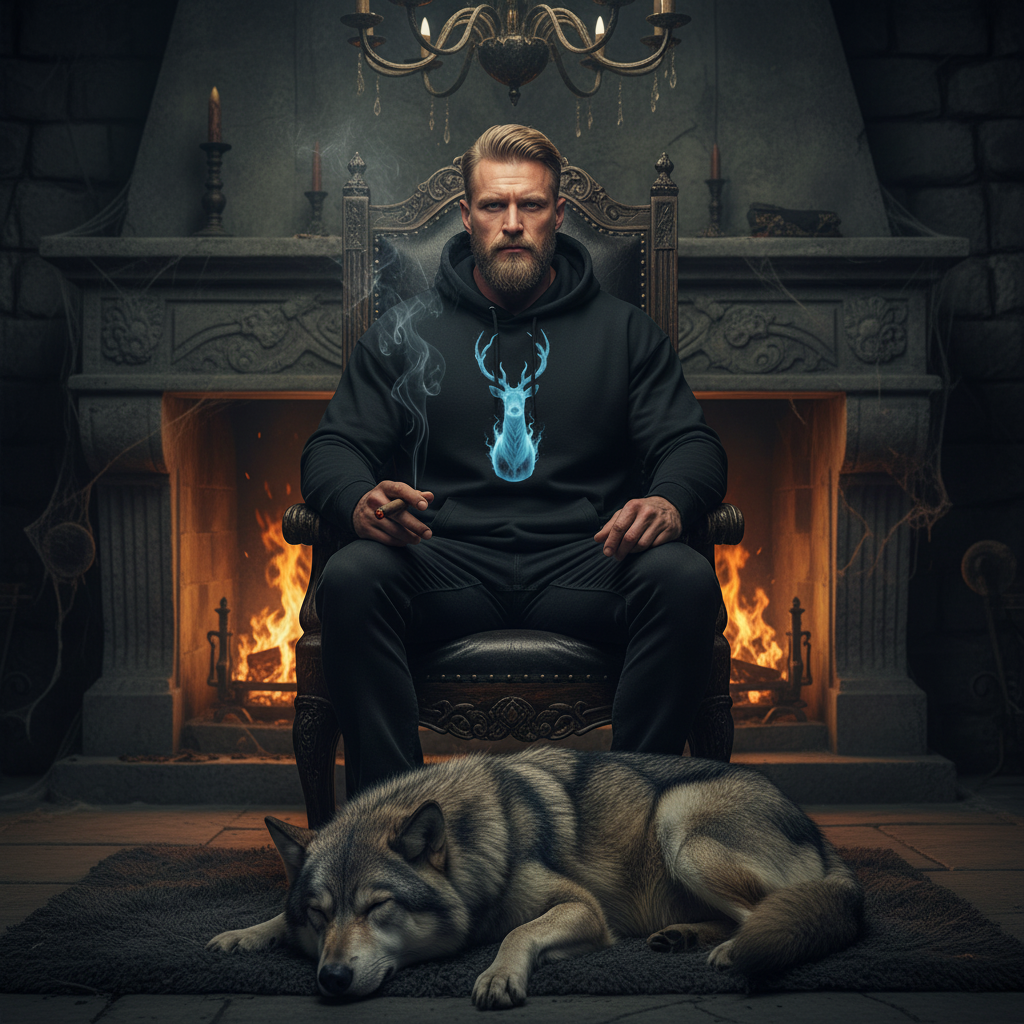 Le Sweat à Capuche Heritage 1291 est l'armure de l'homme fort, taillée pour braver les nuits d'automne et d'hiver en haute montagne. La face avant arbore la vision spectrale du grand cerf, une force mystique des cimes qui vous guide dans l'obscurité.
